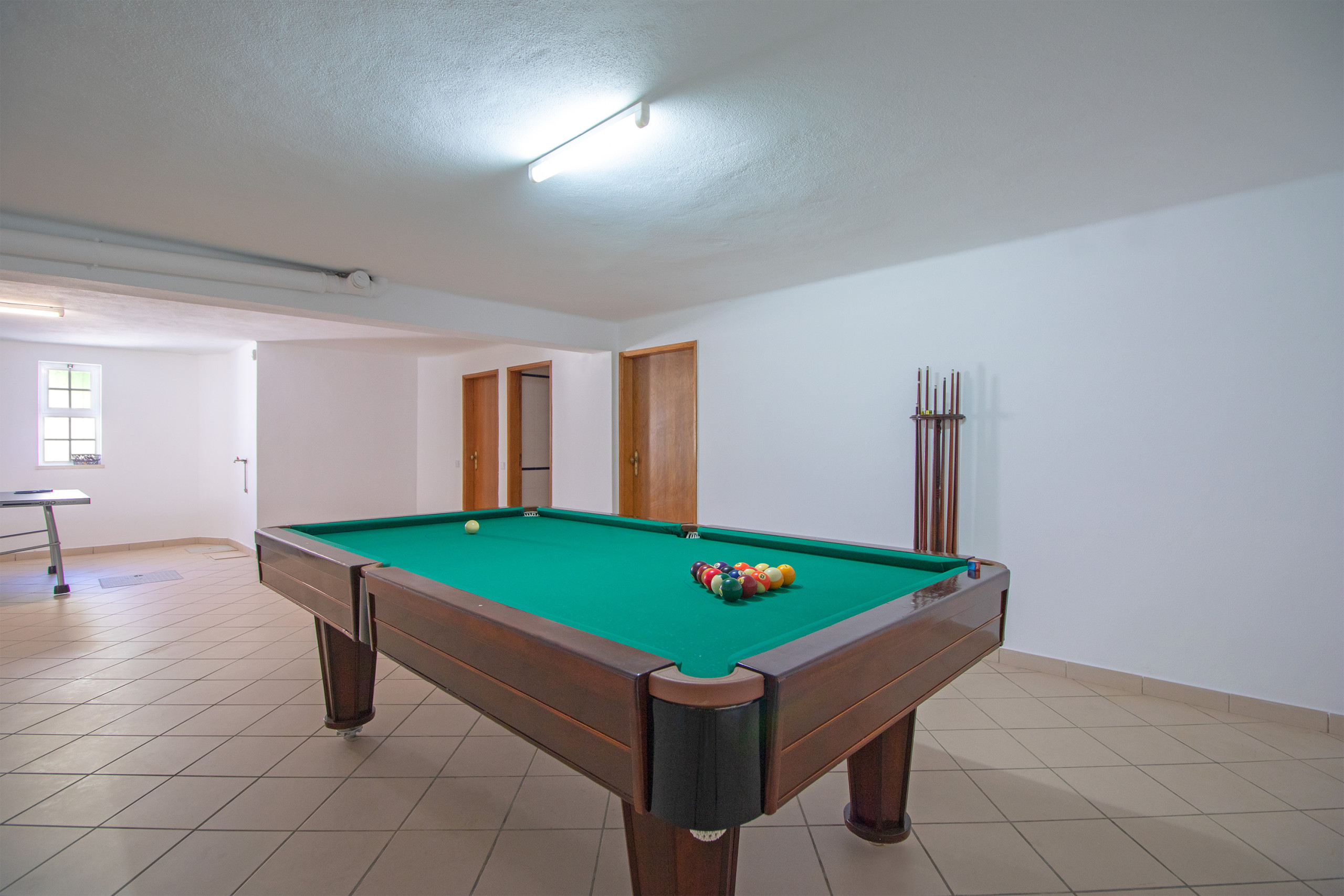 En el interior, la villa cuenta con áreas de estar y comedor acogedoras con televisión por satélite y asientos cómodos, creando un ambiente acogedor para veladas tranquilas, lectura o tiempo en familia. La cocina totalmente equipada facilita la vida cotidiana, ya sea preparando comidas sencillas o disfrutando de largas cenas relajadas juntos. Para entretenimiento adicional en el interior, una sala de juegos con billar y tenis de mesa ofrece una gran opción para los días de invierno más frescos. Se proporcionan mantas acogedoras por toda la casa, y hay calefactores portátiles adicionales disponibles a petición para garantizar mayor comodidad durante su estancia.