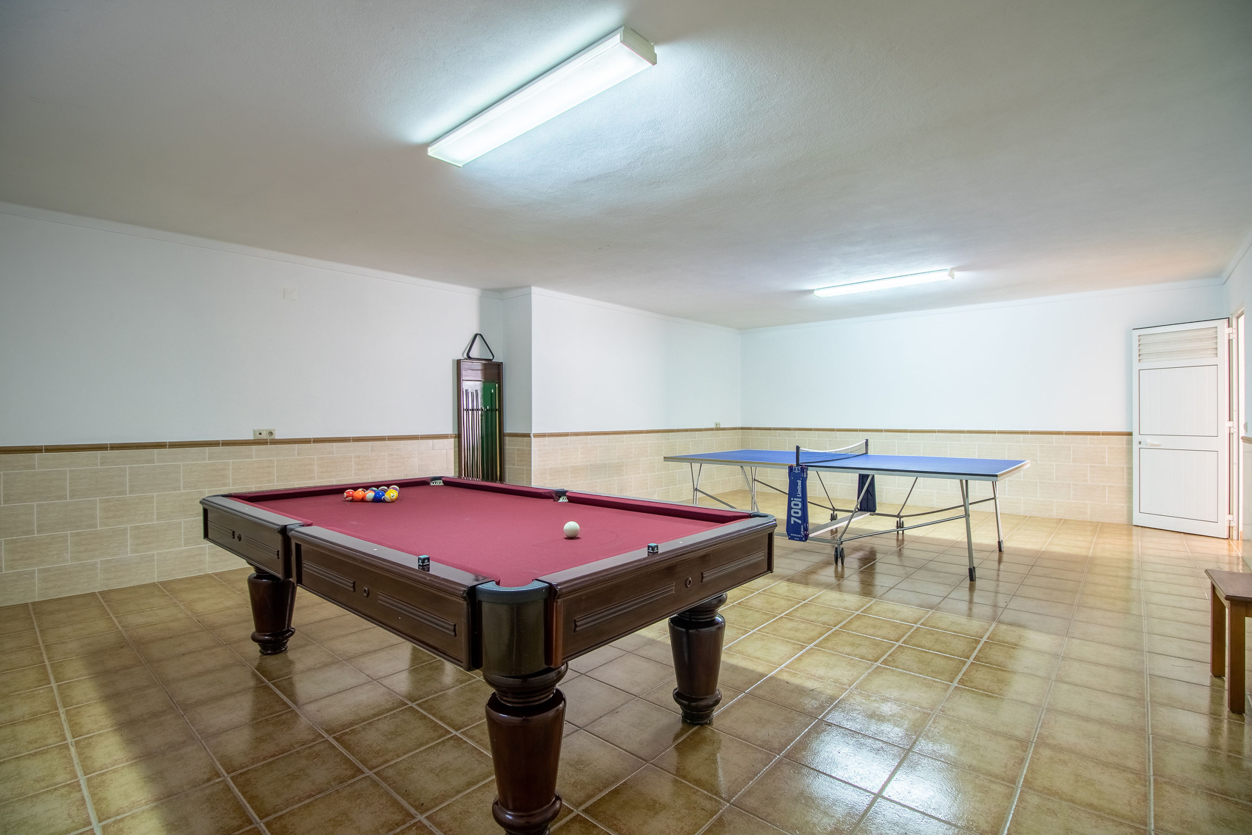 En el interior, el generoso salón-comedor invita a todos a reunirse, con asientos cómodos, una chimenea, un televisor de pantalla plana y una gran mesa de comedor ideal para comidas compartidas y veladas acogedoras en casa. La cocina independiente y totalmente equipada hace que la cocina diaria sea fácil y práctica. Para un entretenimiento adicional en el interior, la villa incluye una sala de juegos con billar, tenis de mesa y dardos, perfecta para los días más fríos de invierno. Se proporcionan mantas acogedoras en toda la casa, y hay calefactores portátiles adicionales disponibles a petición para mayor comodidad en invierno.