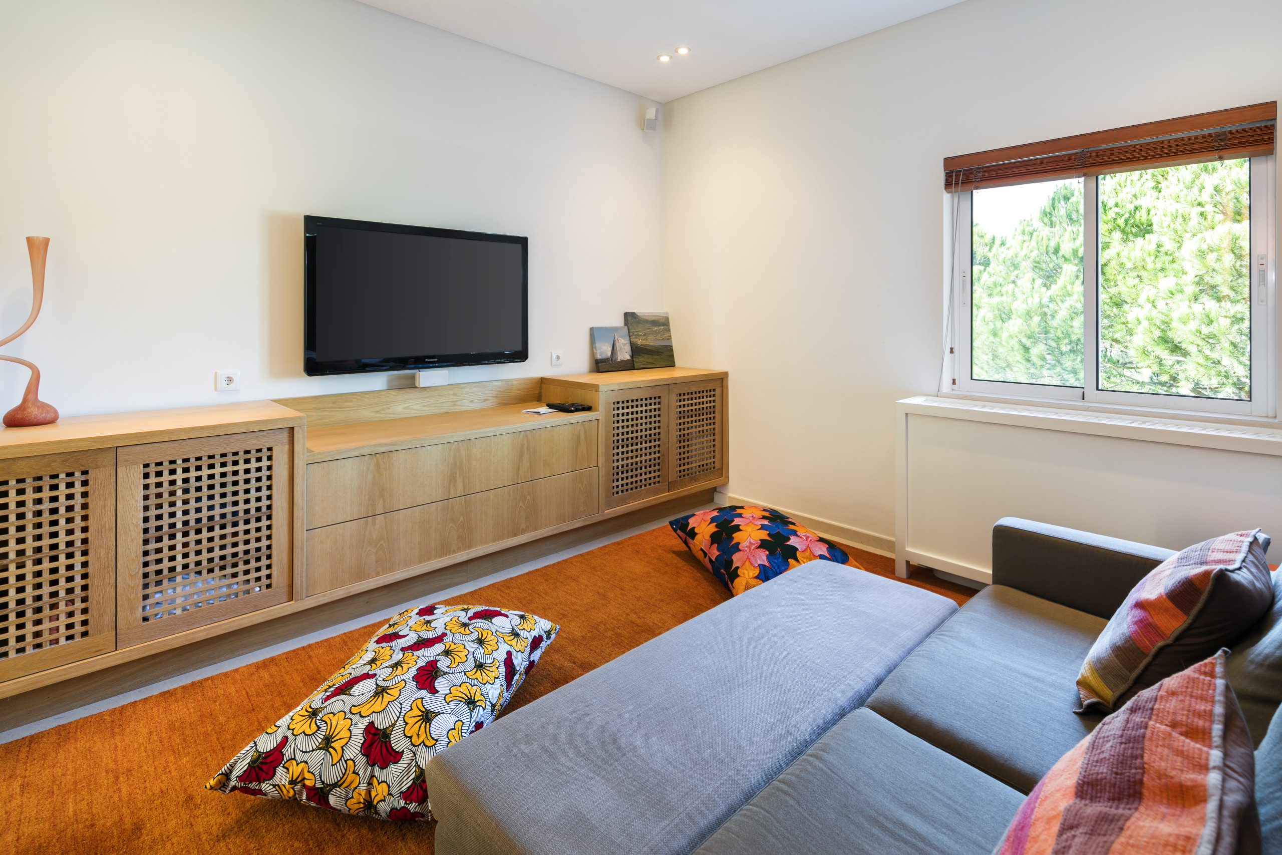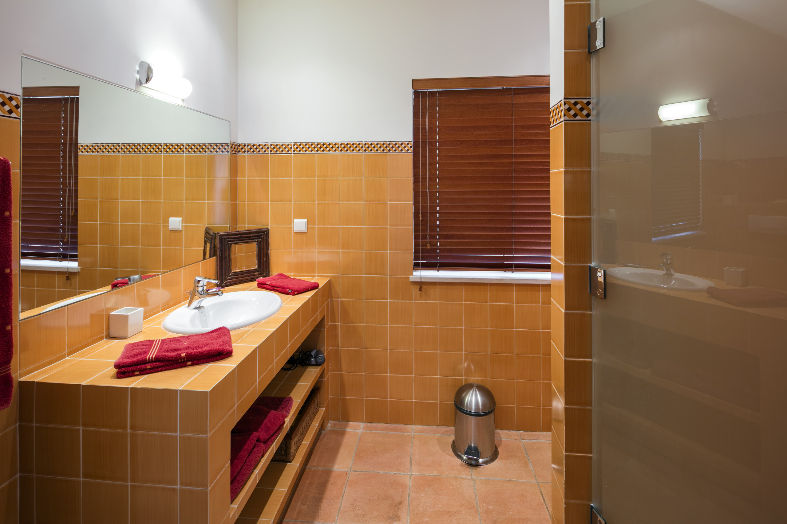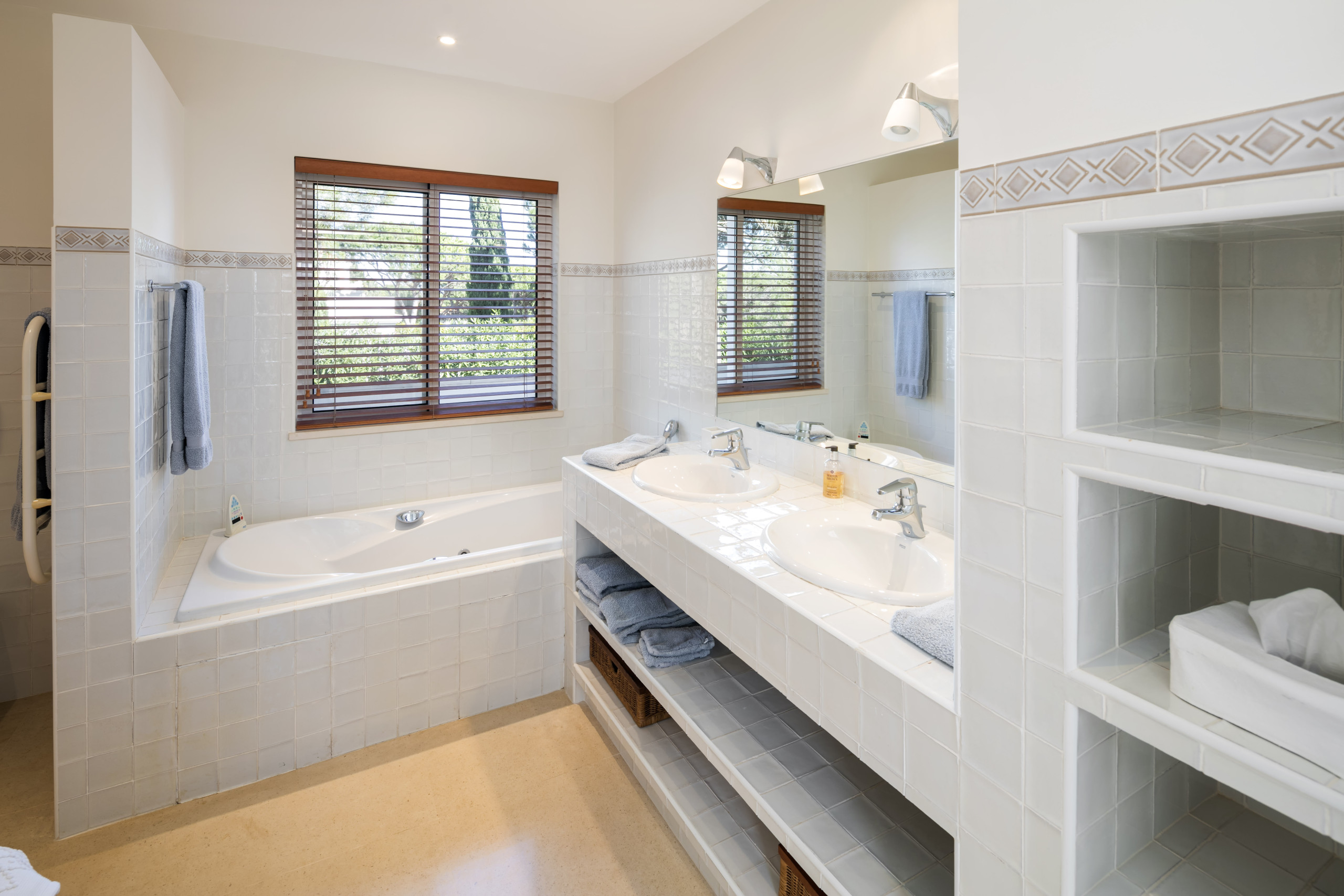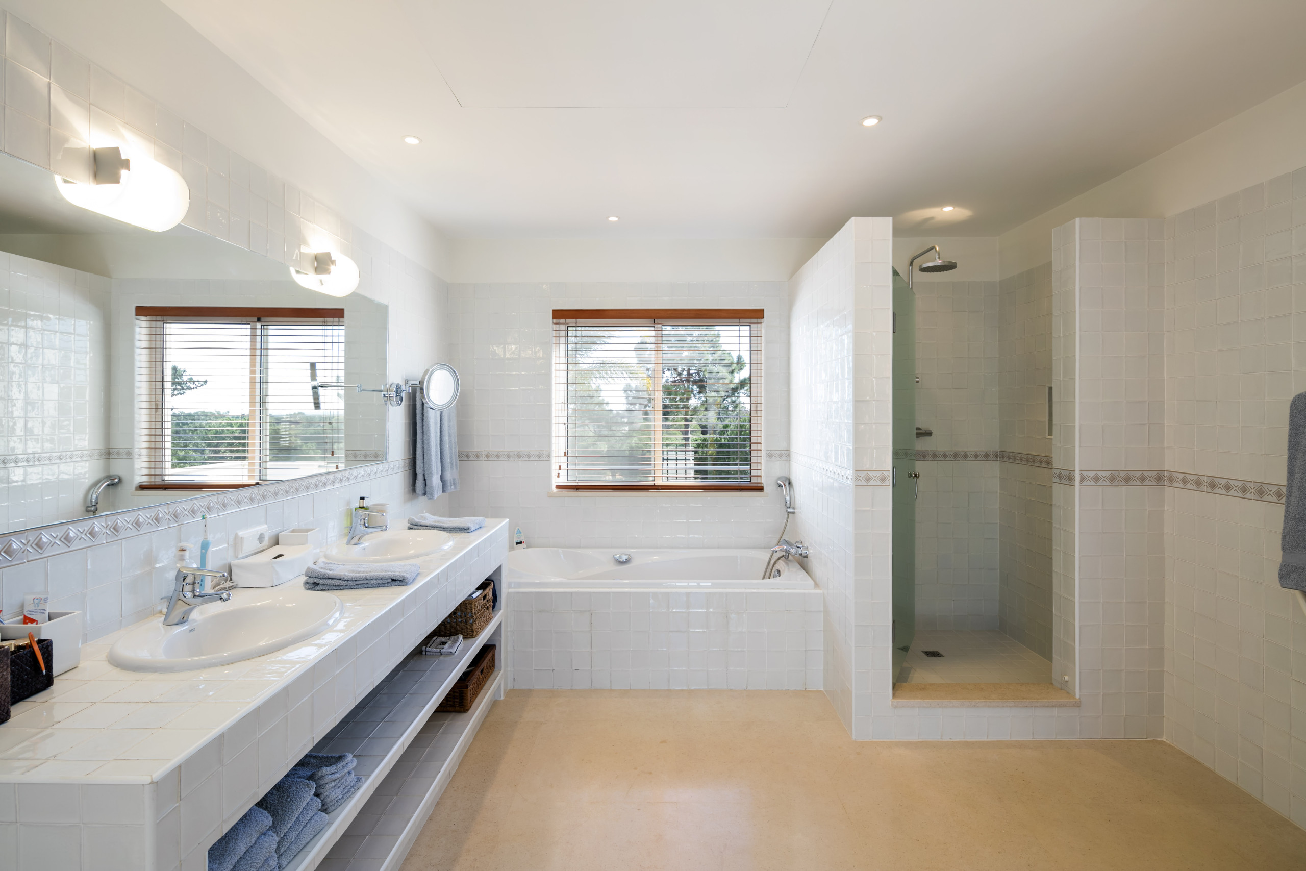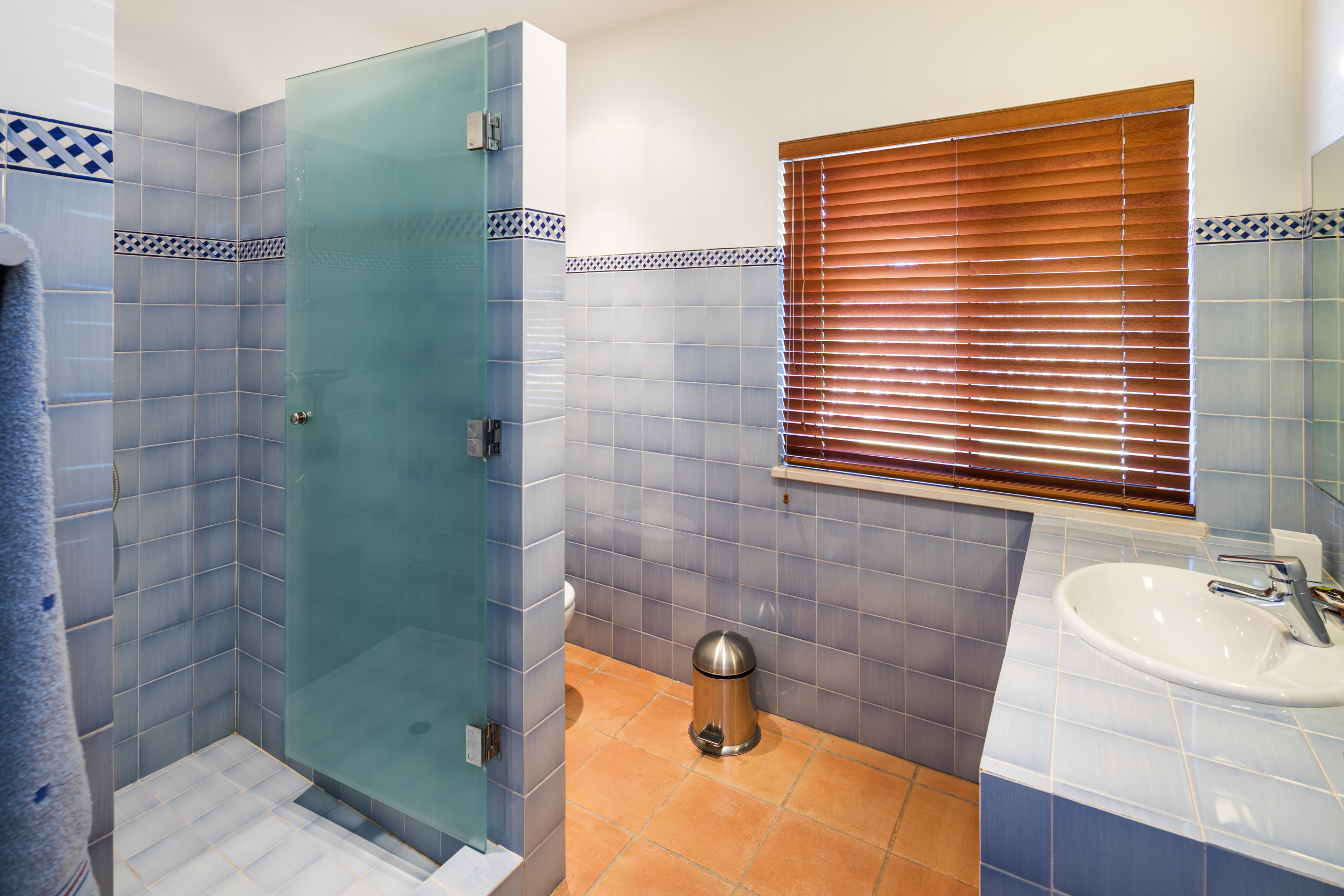 En la primera planta de la propiedad puede encontrar una sala de TV con una televisión de pantalla plana equipada con televisión por cable, un reproductor de DVD y un sistema de sonido envolvente BOSE. El alojamiento cuenta con cuatro dormitorios con baño en suite. En la planta baja, hay dos dormitorios dobles con baño en suite y en la primera planta dos dormitorios dobles, también con baño en suite. Ambos dormitorios de la planta baja tienen puertas corredizas que dan acceso a la terraza y al área de la piscina. Los dormitorios de la planta superior tienen amplios balcones privados.