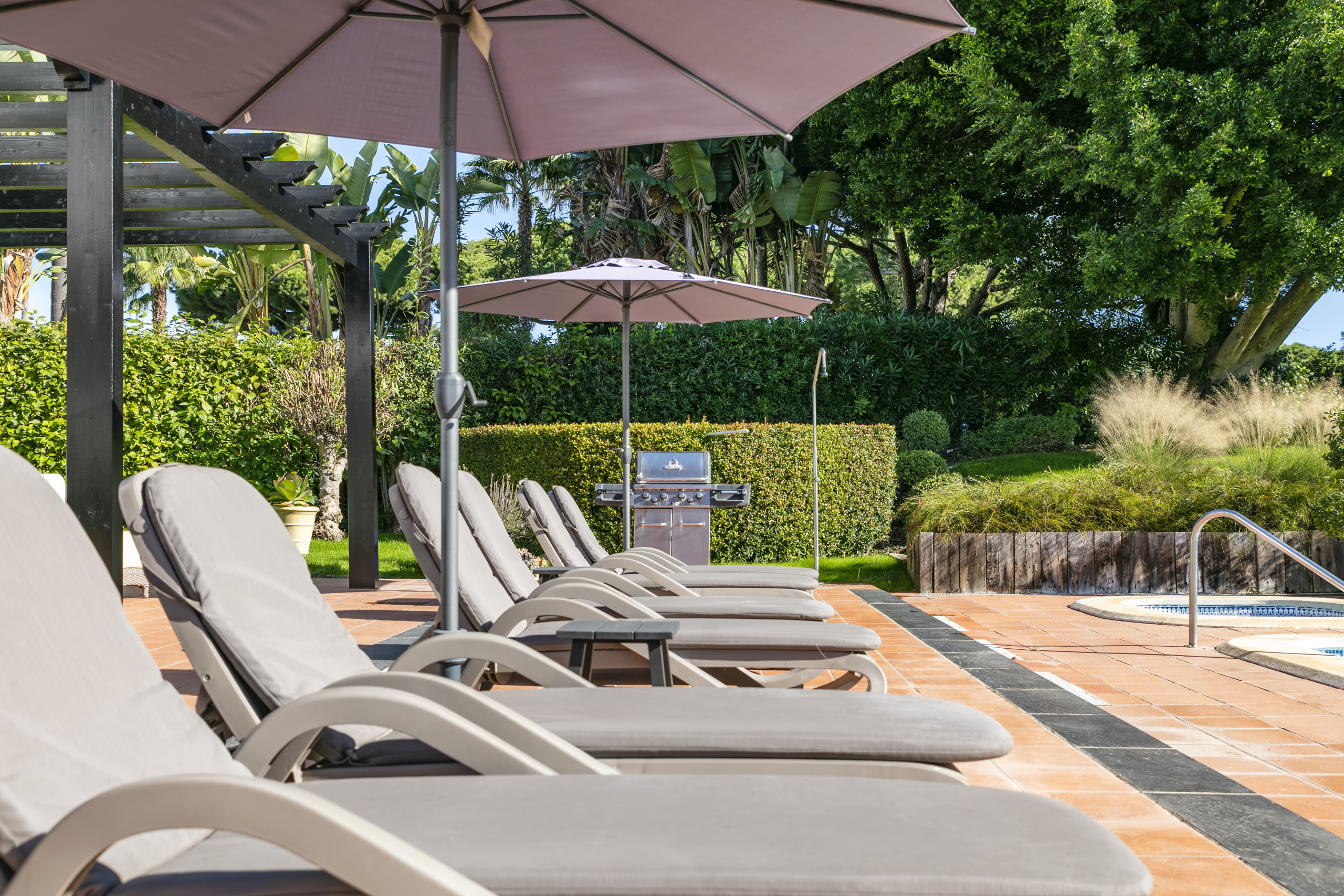 Para relajarse, hay un acogedor área de asientos con sofás y sillas de ratán, perfecta para descansar con un libro o una bebida. Los chefs novatos del grupo apreciarán la barbacoa de gas, ideal para preparar deliciosas comidas al aire libre que se pueden disfrutar en la mesa de comedor exterior, que tiene capacidad para seis personas.