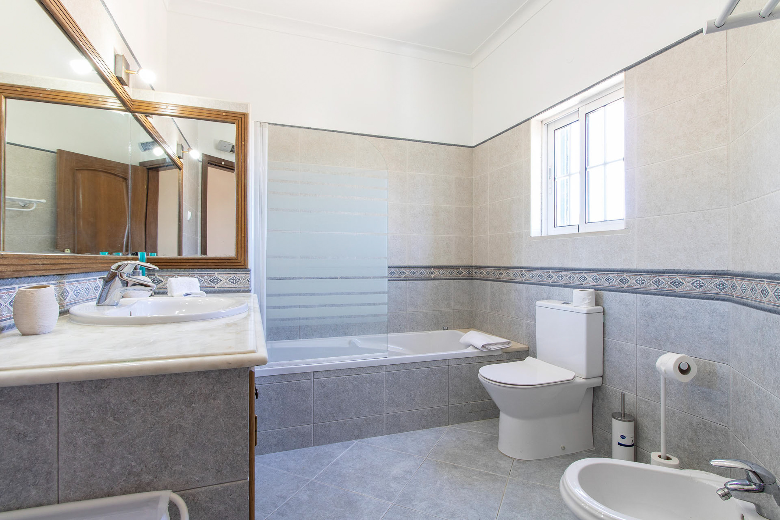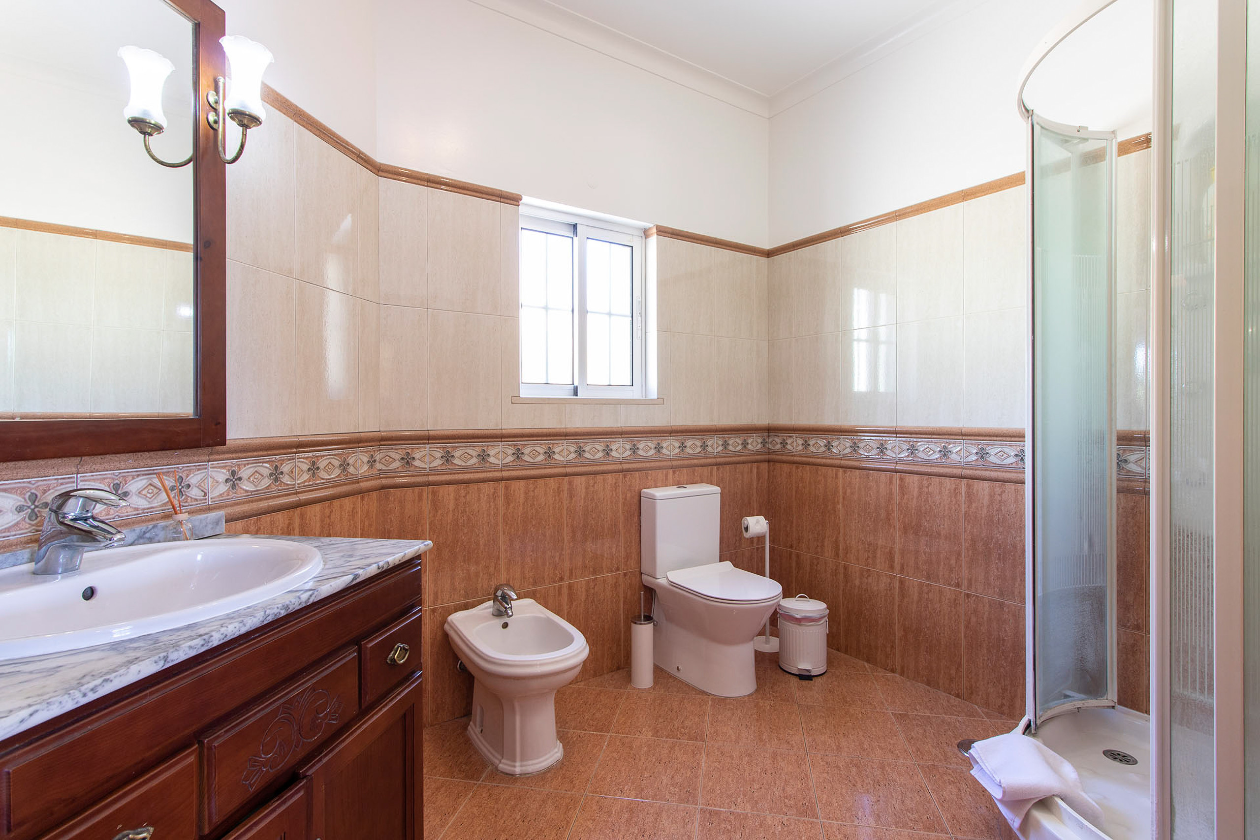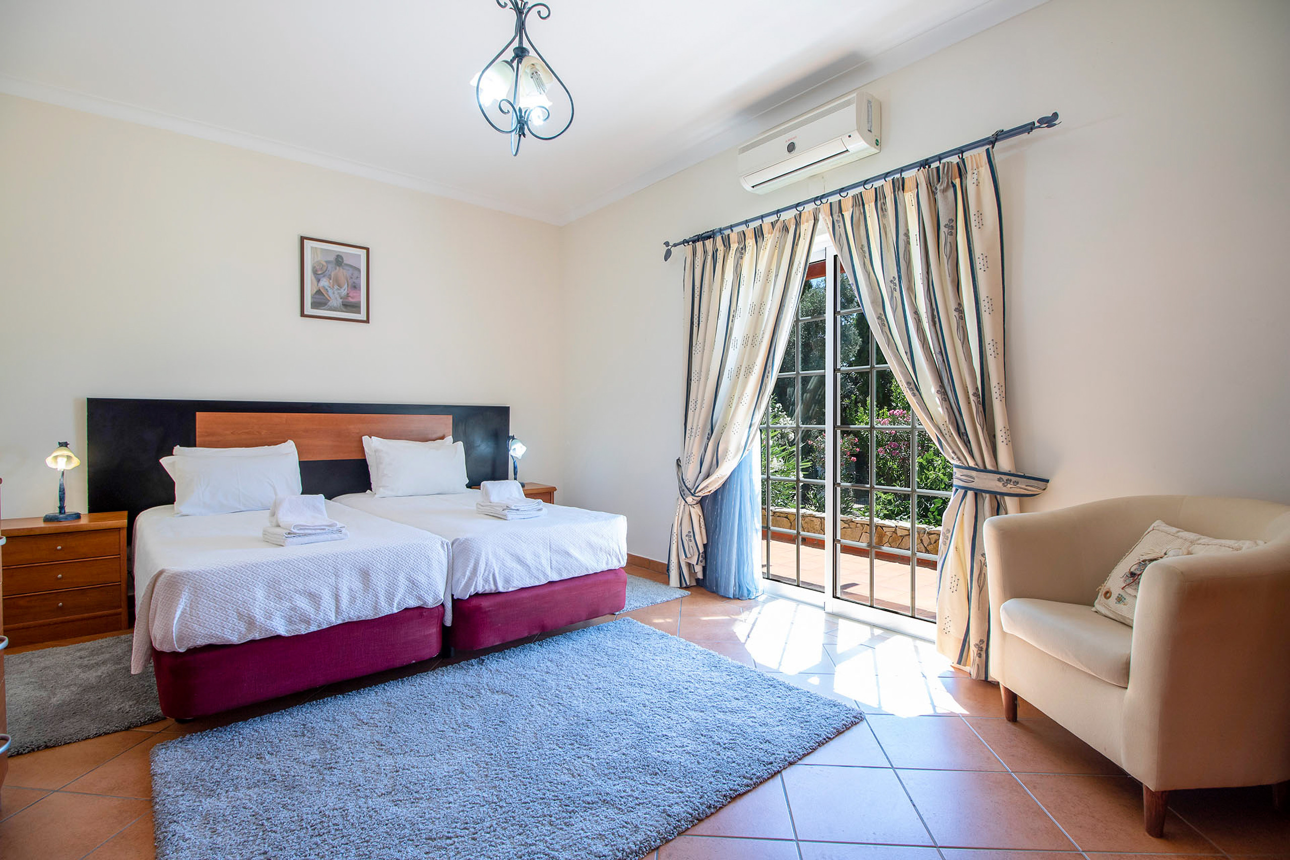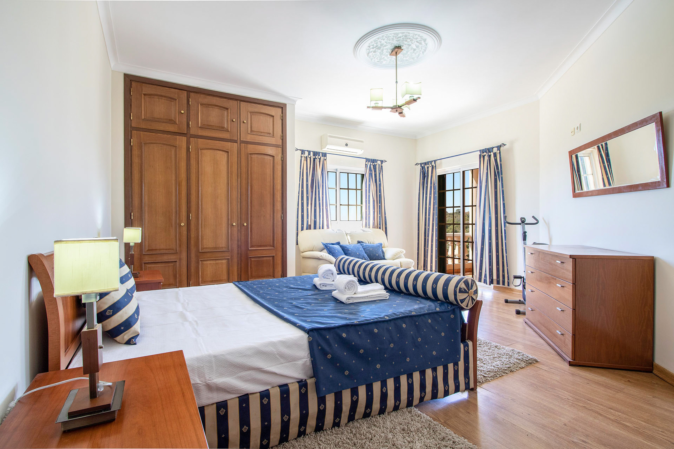 All 3 bedrooms had aircon but 2 of the units are quite old and could do with an upgrade to be more efficient. The 2 double beds in the upstairs rooms were very hard. My husband loved it but myself and my parents found it a bit too hard. It's totally subjective of course! You have to hold the shower heads to have a shower in the 2 ensuites and this could be easily rectified. All in all this is a great choice for a holiday villa!