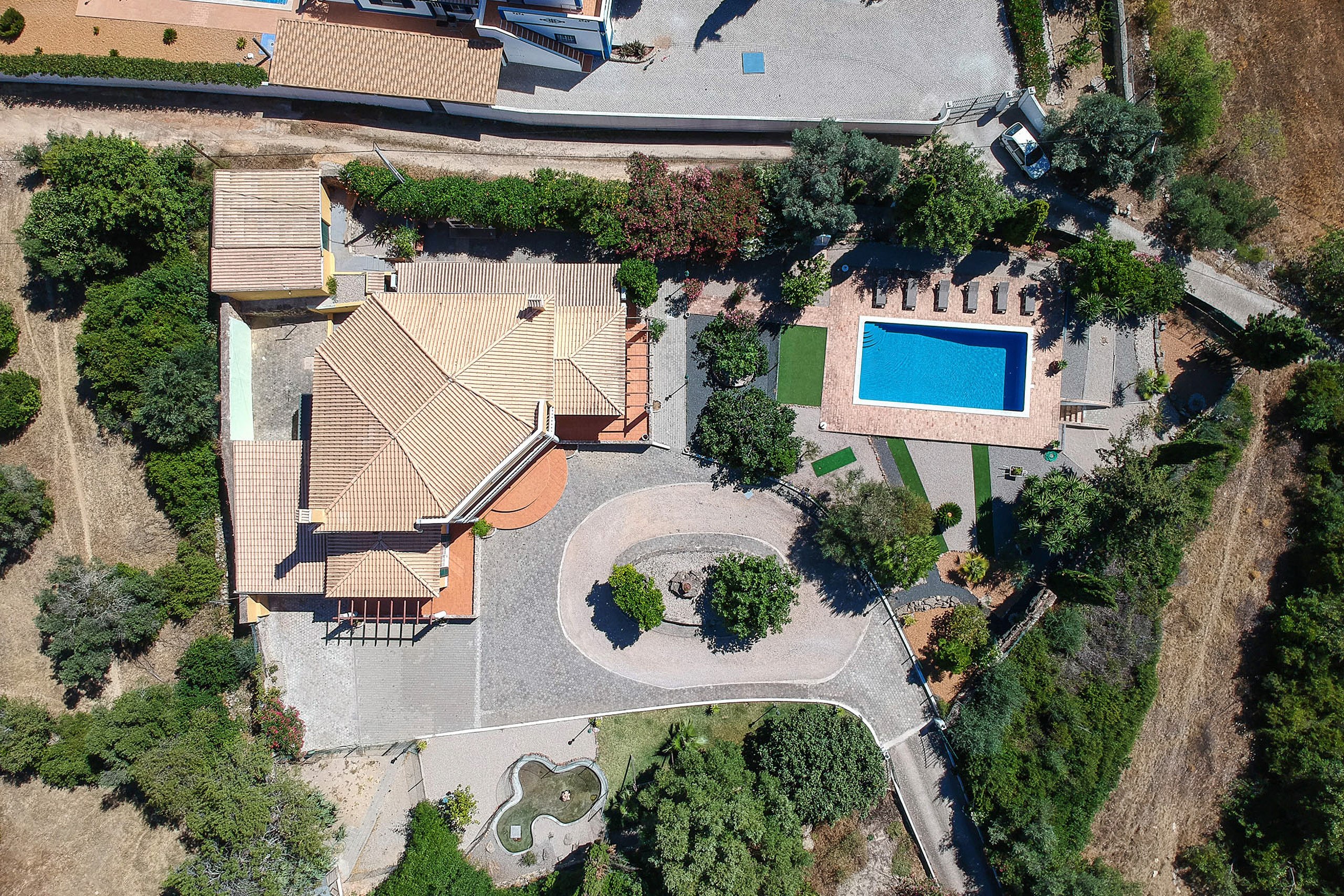 The villa was in a lovely quiet area (occasional dogs barking from next door during the day only). You do need to be a driverget taxis, as it's quite remote It's about a 5 minute drive to Loule town centre. The villa was spacious and clean and the pool area was lovely with comfortable sunbeds. There was a lack of sun shade but as soon as we requested an umbrella, they delivered and installed one on the same day which we really appreciated. There is plenty of parking and beautiful views all around.