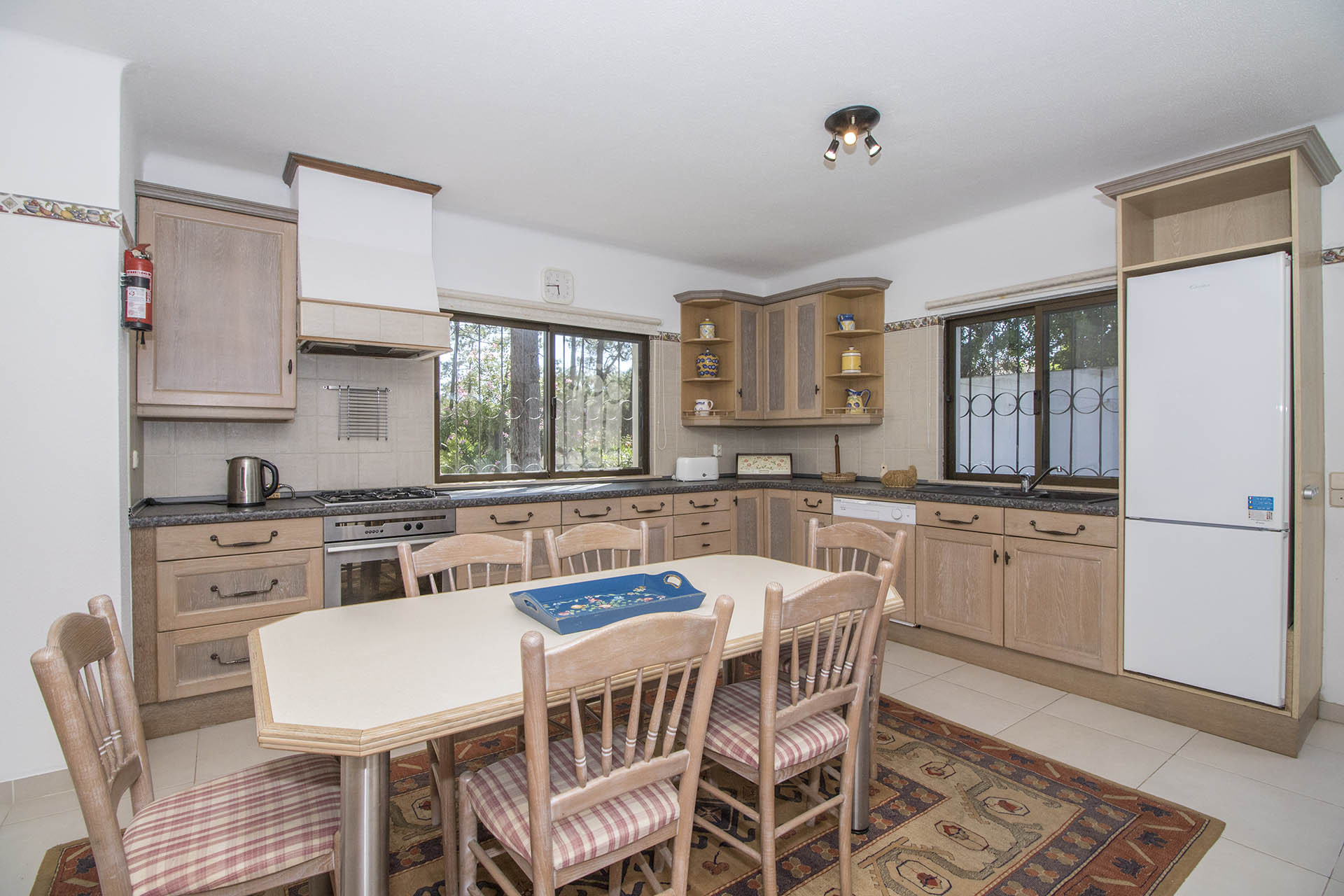 La casa cuenta con una cocina muy espaciosa totalmente equipada con lavavajillas, microondas, cafetera y otros accesorios indispensables.