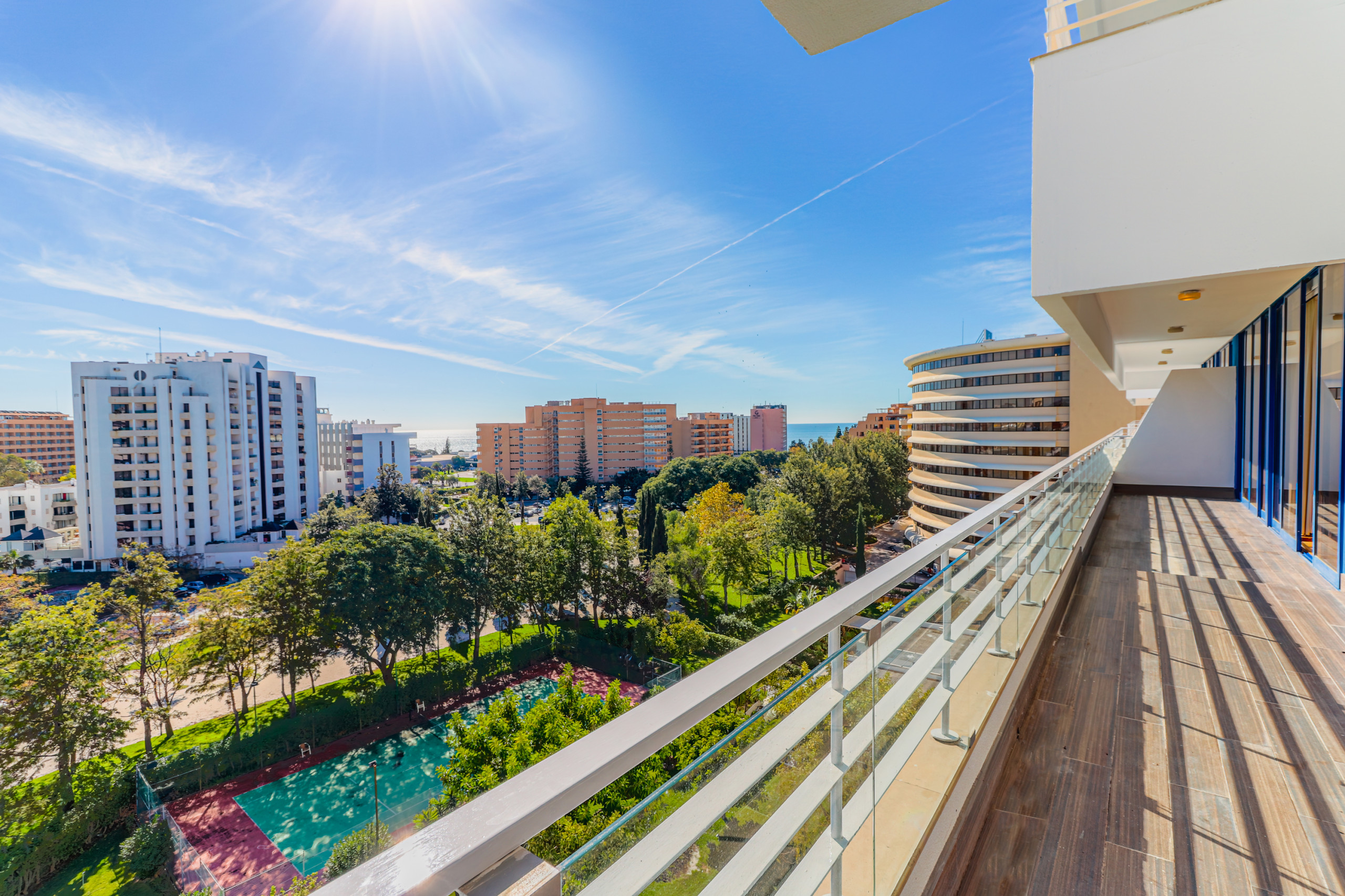 The property was large and spacious. As you enter through the front door into the small welcome area you enter a large kitchen, dining room, front room with large windows and sliding doors out to a spacious balcony. Also from the welcome area there are two separate bathroom doors, one to a bathroom which includes a shower and sink, as well as the washing machine, and next door to this is the second bathroom which includes a toilet, sink and bath with shower over. The final two doors beside the kitchen are the two bedrooms. Neither bedroom is ensuite but you could allocate one bathroom to each bedroom but you would have to share the toilet. Each bedroom had conditioning and large wardrobes and chest drawers, which was more than adequate for clothes, etc. The property was well equipped and had everything you could possibly want. Bonus of the washing machine was great and the clothes dried quickly on the air which is situated on the balcony. There was a hairdryer in each bathroom. There was also a dishwasher and the property owners provided a few dishwasher and washing machine tablets to get started. The apartment is a private owned apartment in the hotel building. The apartment is on the seventh floor and there are three lifts. The hotel is in an excellent location just one road back from the marina and a five minute walk to the beach. There are lots of bars and restaurants nearby.