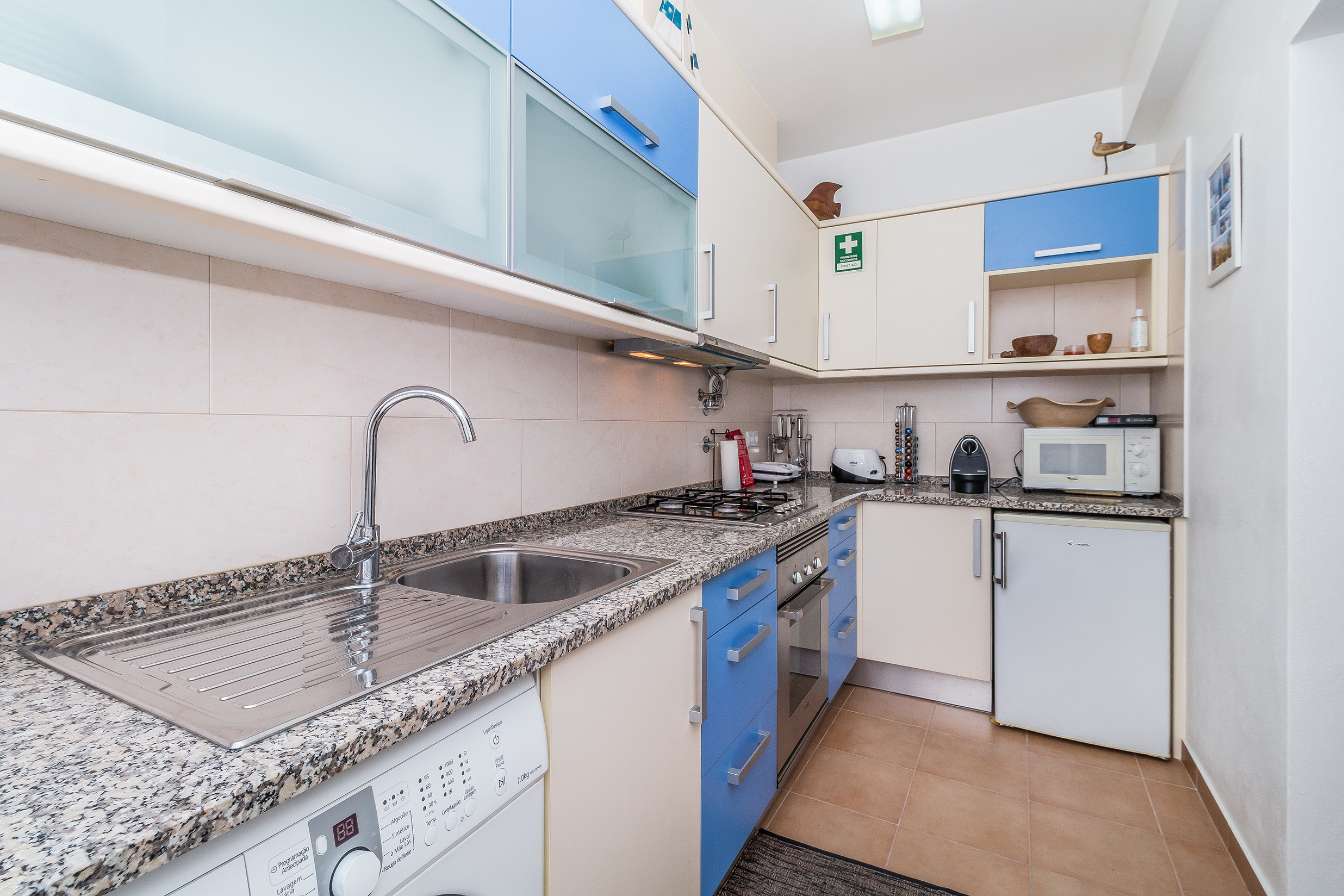 La cuisine indépendante, à gaz, est équipée avec réfrigérateur, micro-ondes, four, congélateur, vaisselle/couverts, ustensiles/cuisine, cafetière, grille pain et bouilloire.