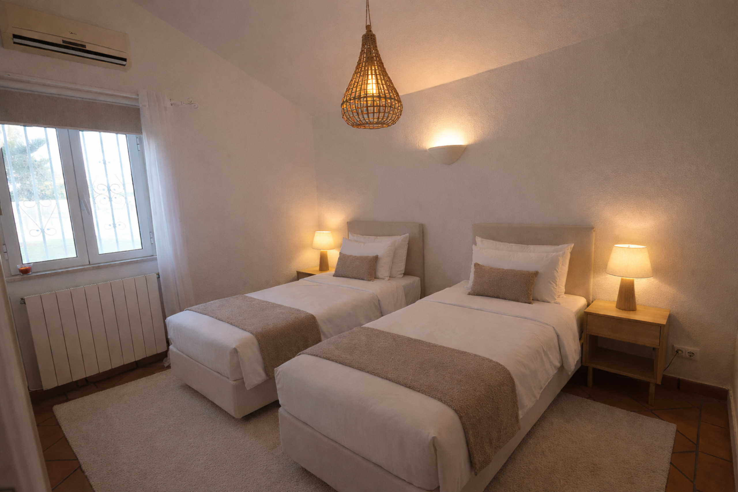 La villa propose trois chambres climatisées et deux salles de bain, offrant confort et flexibilité pour les familles ou les amis qui prévoient une escapade hivernale plus longue. Bien située près de la plage et des commodités locales, Casa Falésia est une excellente base pour un séjour hivernal calme et confortable en Algarve. Contactez AlgarveHolidays™ dès aujourd'hui pour réserver votre séjour d'hiver et vous sentir comme chez vous en Algarve.