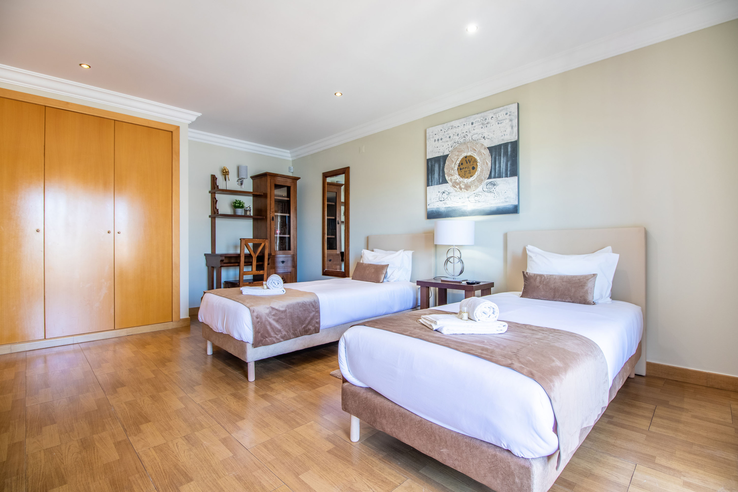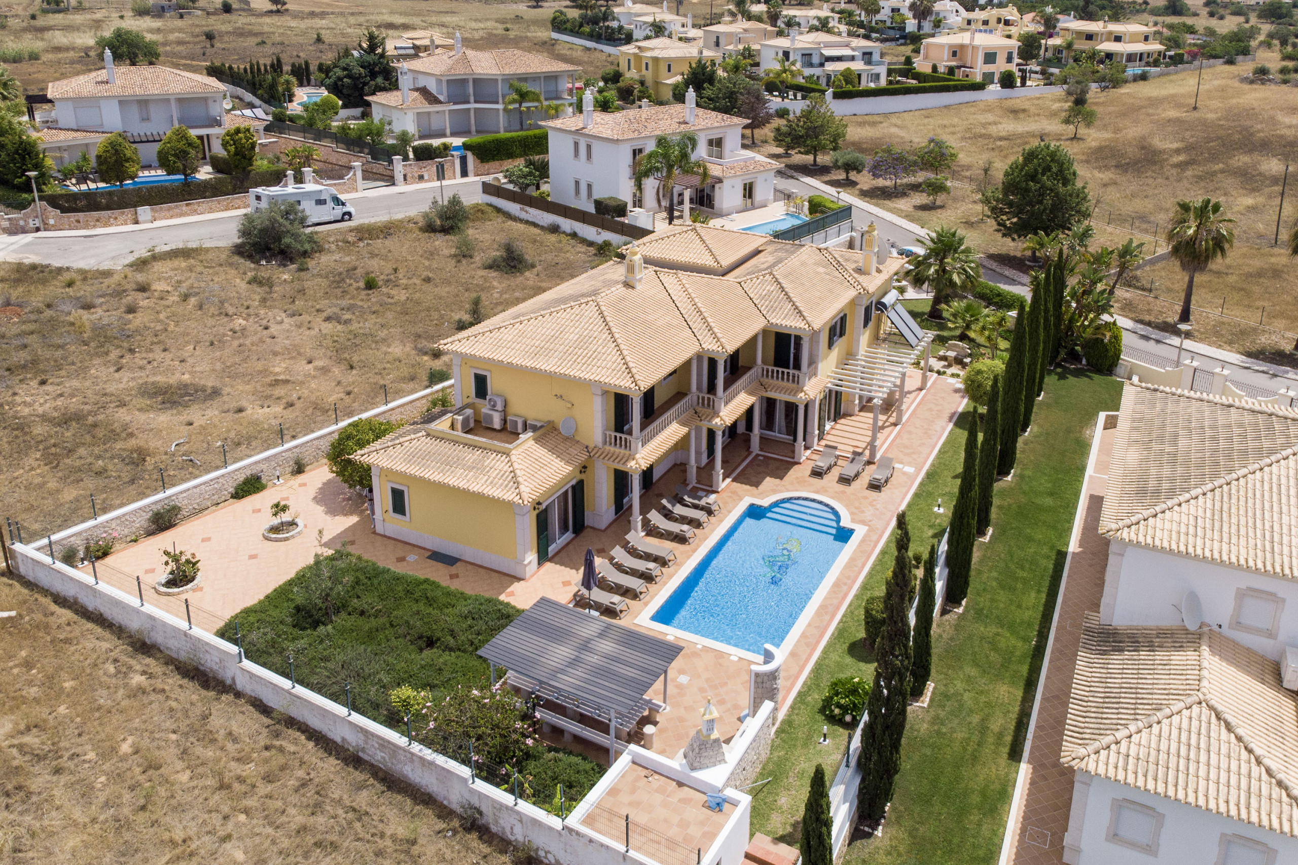 A moradia oferece cinco quartos com casa de banho privativa e ar condicionado, além de uma casa de banho de convidados, proporcionando excelente espaço, privacidade e flexibilidade para estadias mais longas de inverno. Bem localizada perto de Galé e Albufeira, com fácil acesso a lojas, campos de golfe e à costa, esta casa é uma excelente base para uma escapadela calma e confortável no Algarve durante o inverno. Contacte a AlgarveHolidays™ hoje para garantir a sua estadia de inverno e sentir-se em casa no Algarve.