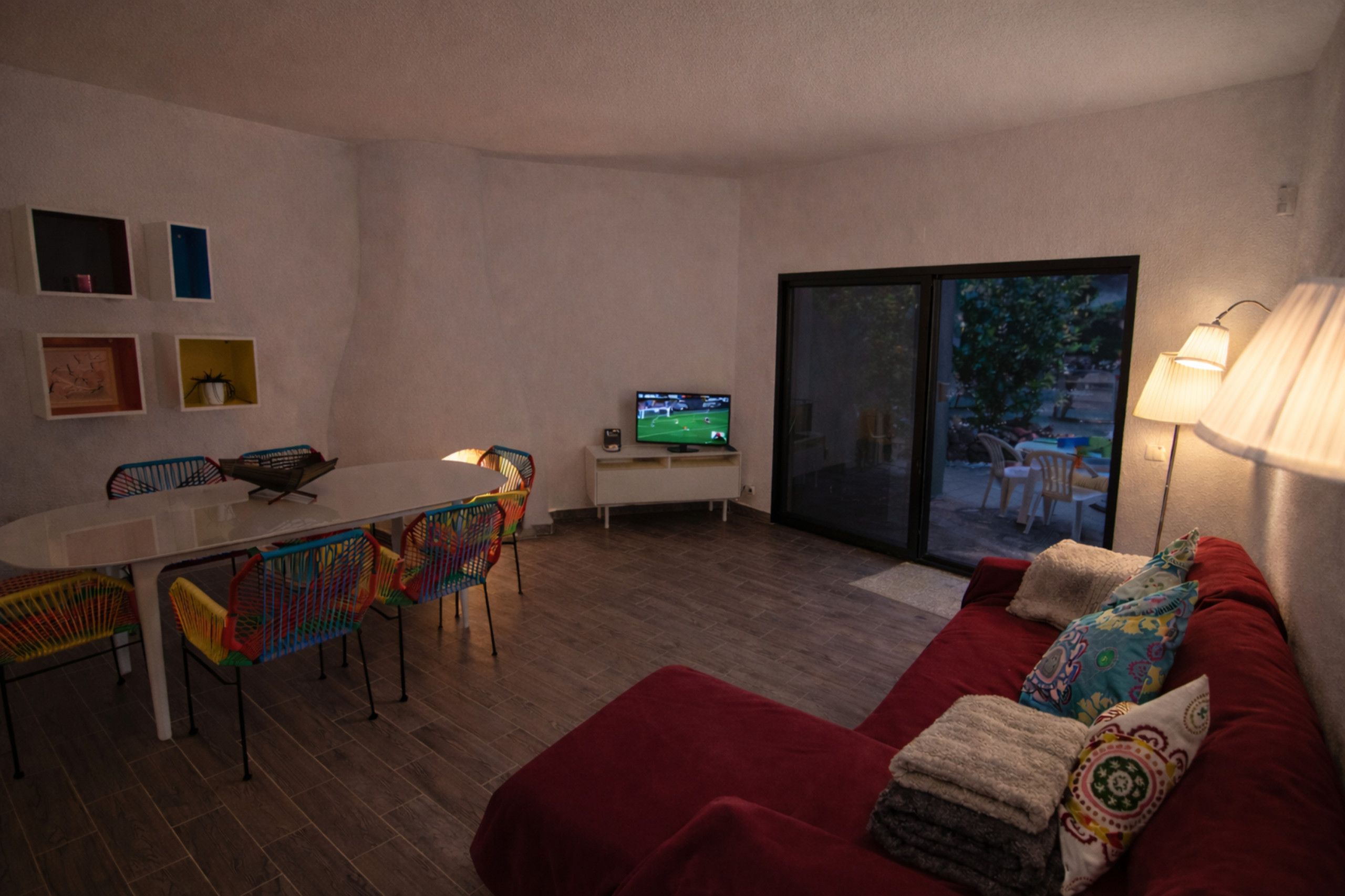 No interior, a área de estar e jantar espaçosa é projetada para o conforto, com um sofá acolhedor, TV, Wi-Fi rápido e acesso direto ao terraço, tornando-a um espaço encantador para serões tranquilos, leitura ou trabalho remoto. A cozinha compacta, mas bem equipada, é prática para a confeção de refeições diárias e refeições partilhadas. Mantas acolhedoras são disponibilizadas por toda a casa, e aquecedores portáteis adicionais estão disponíveis a pedido para garantir um conforto extra nos dias mais frescos.