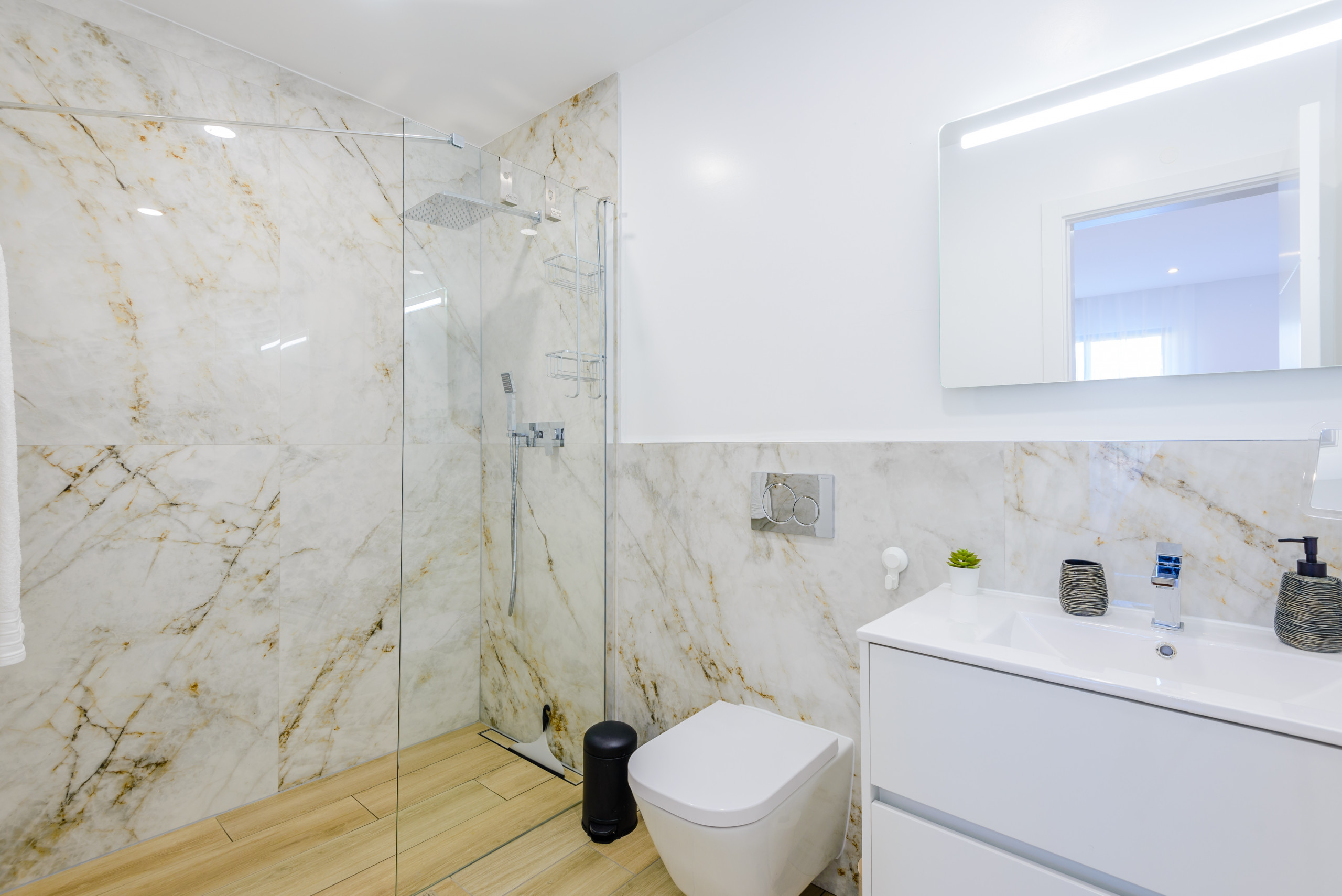 O apartamento tem 2 quartos, 2 casas de banho (uma em suite), varanda e tem capacidade para 4 pessoas. Tem aproximadamente 100 m². Também está incluído um espaço de estacionamento na área de estacionamento seguro. O ar condicionado está disponível em todos os quartos.