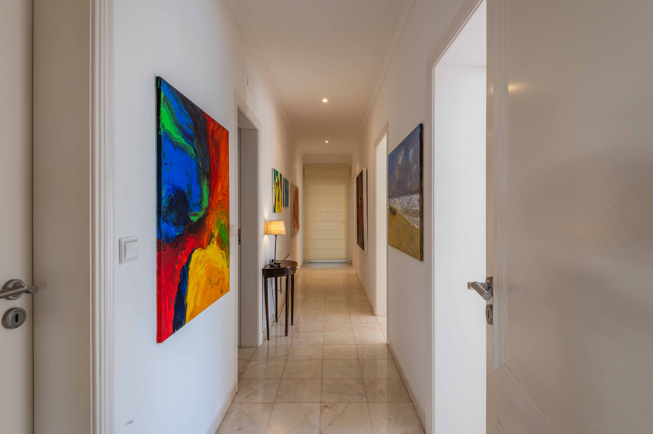 A cozinha está totalmente equipada com aparelhos modernos e as portas abrem-se para o terraço para facilitar o acesso à área de refeições ao ar livre. Composto por três quartos, 2 com cama de casal e 1 com 2 camas de solteiro.