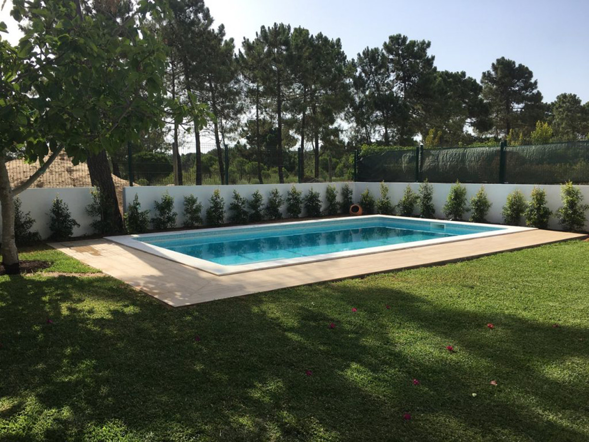 O jardim privado nas traseiras é principalmente relvado com uma piscina privada. Possui uma área coberta com churrasqueira em tijolo de estilo tradicional português, ideal para cozinhar no carvão e jantar “ao ar livre”. A moradia dispõe ainda de estacionamento privativo para até quatro carros e está idealmente situada para quem pretende deixar o carro em casa e ir a pé até à praia.