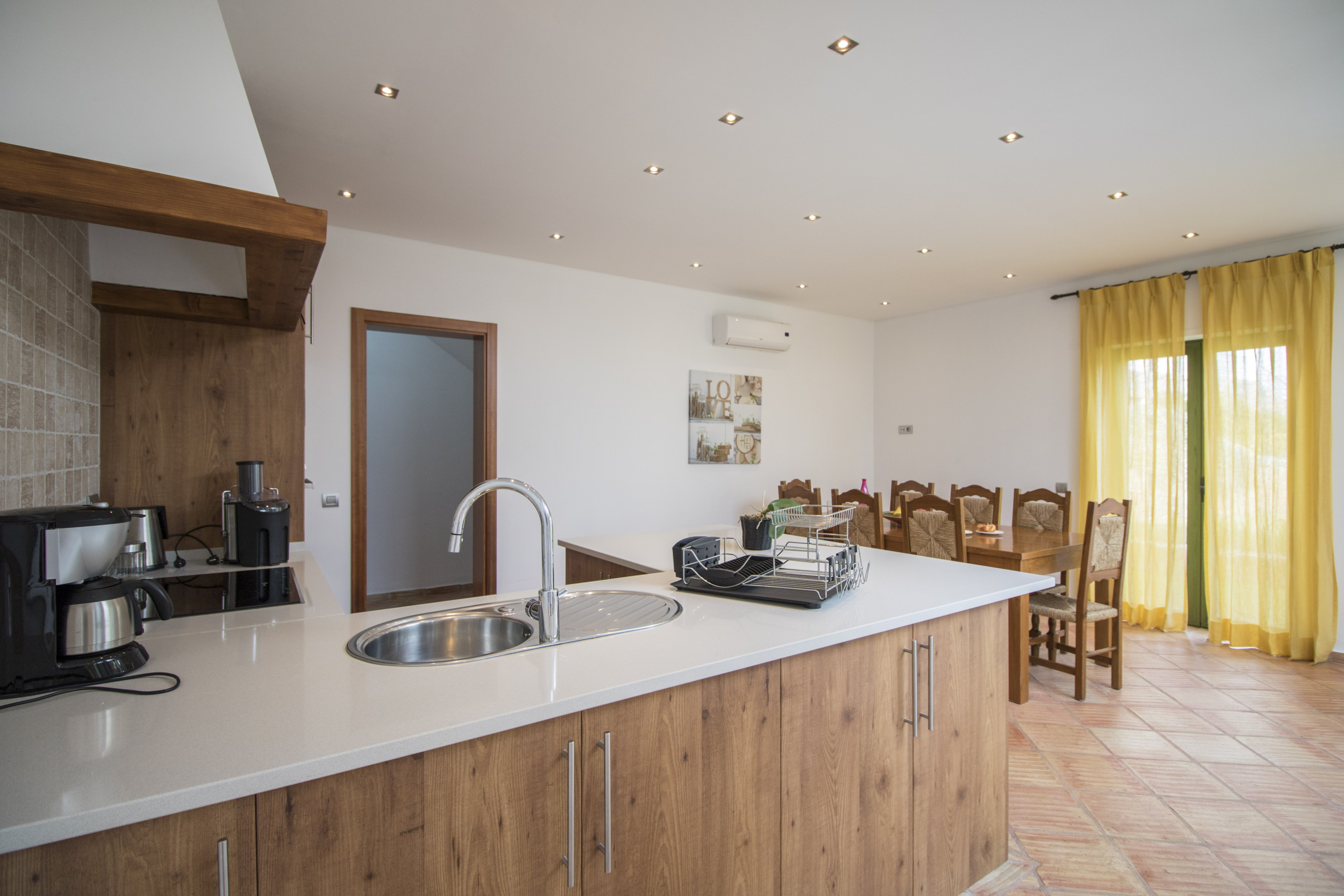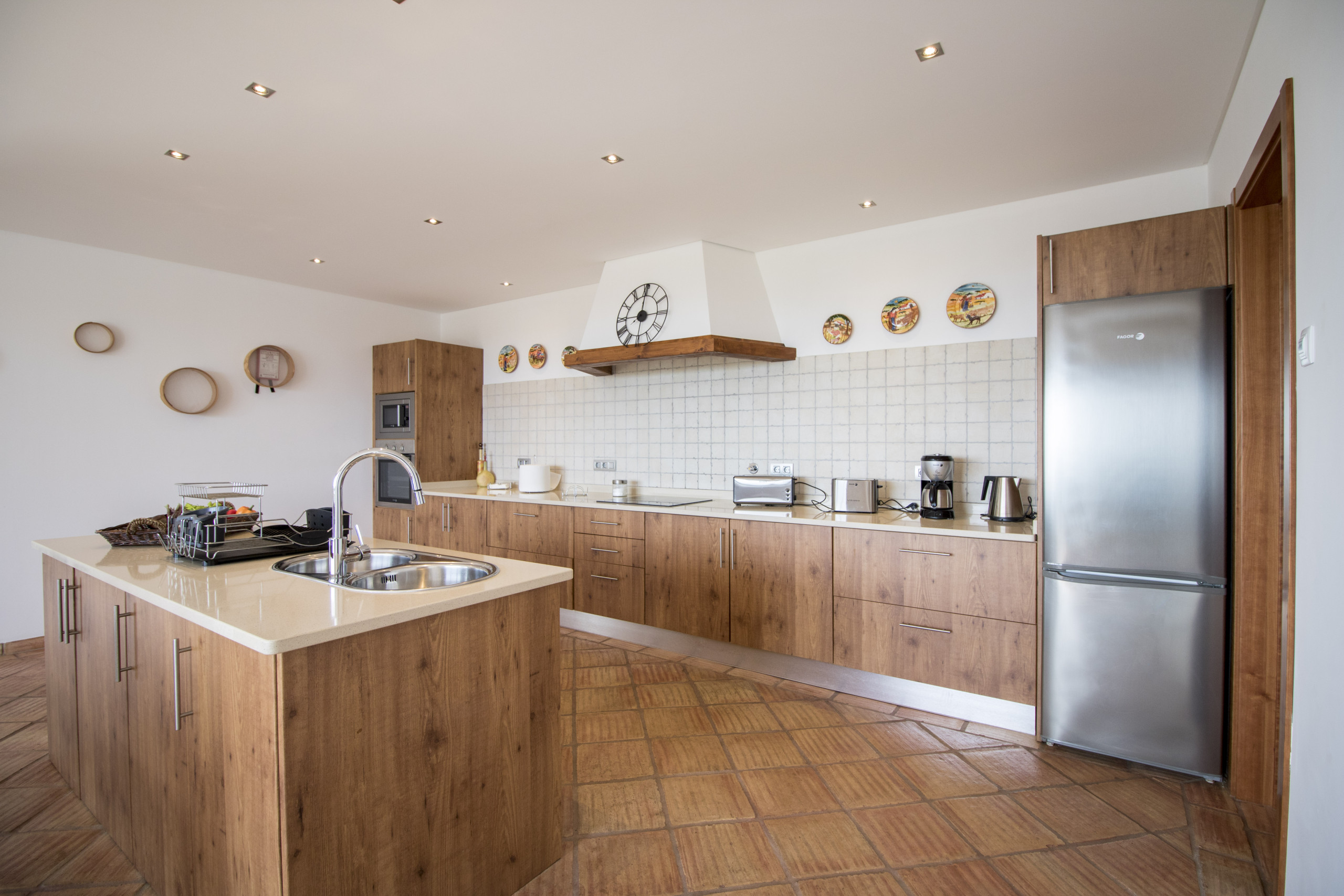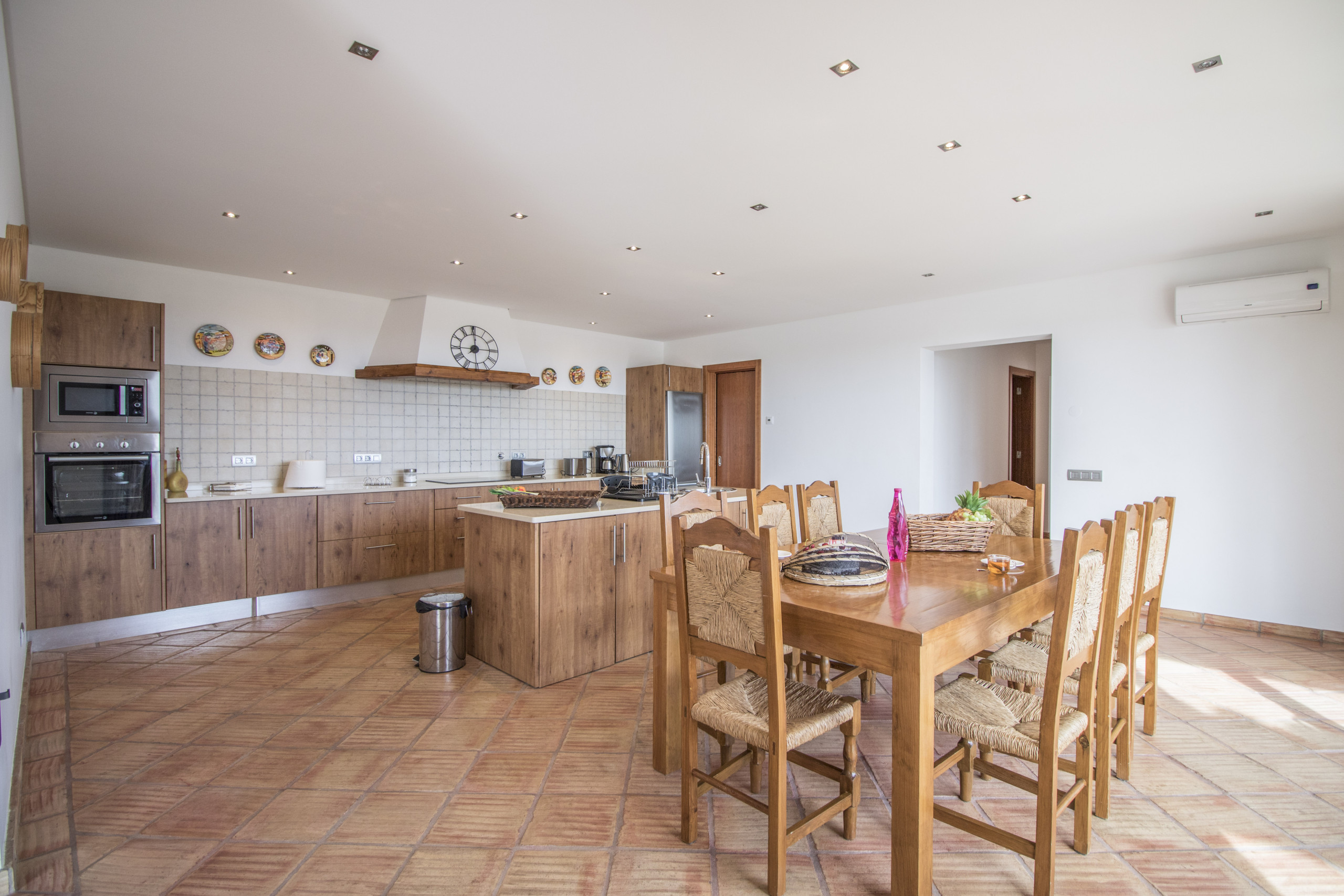 The kitchen is open space, spacious and fully equipped with dishwasher machine, microwave and all essential appliances.