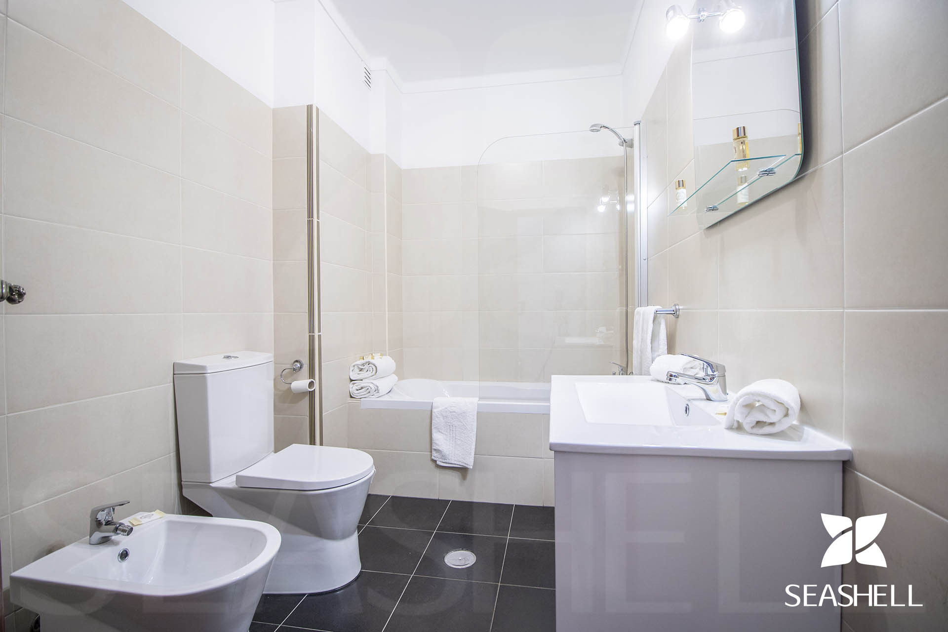 1 Bathroom with bathtub, 2 Bathrooms with shower, Hair dryer.