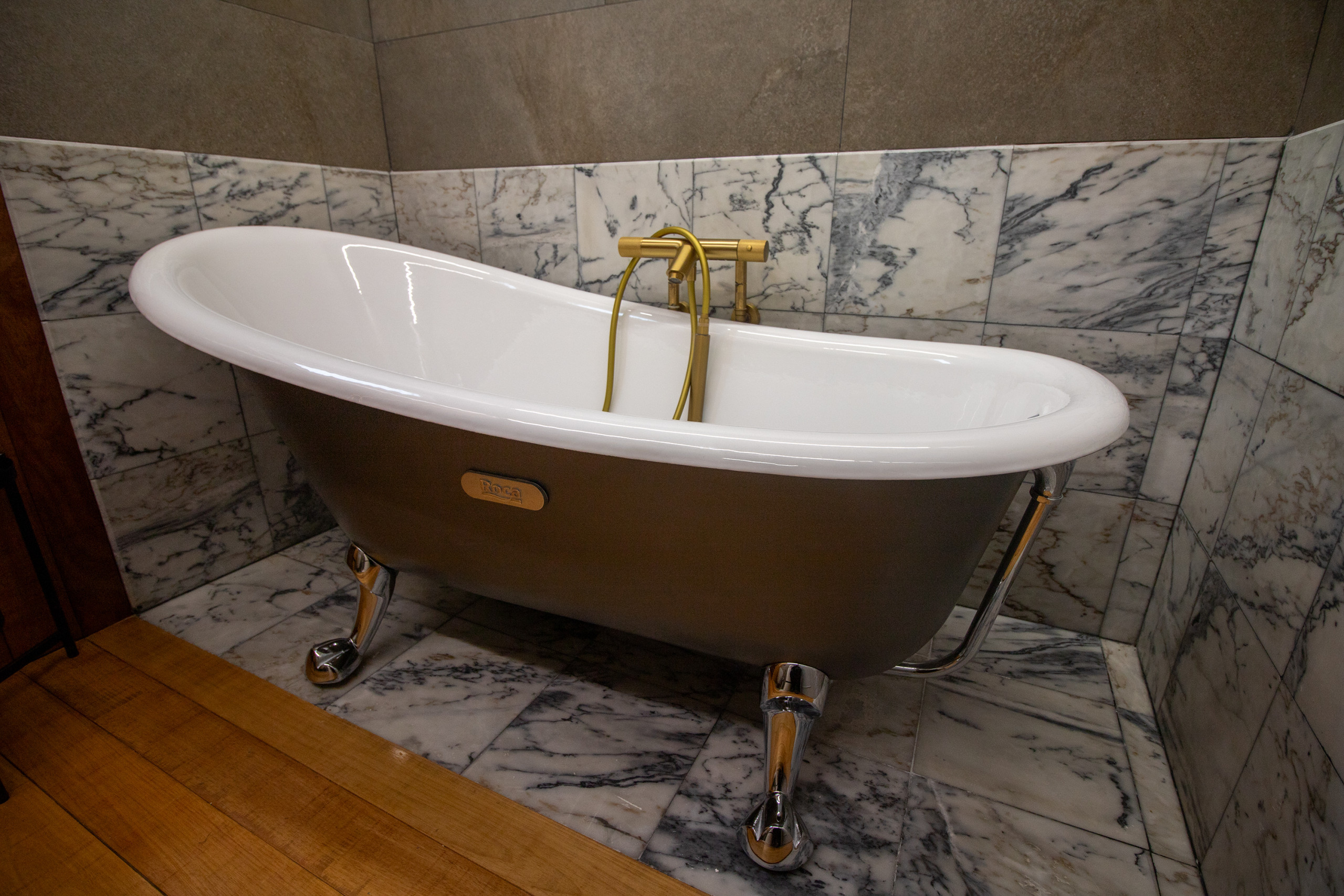 On the ground floor, there are two comfortable bedrooms, both with twin beds pushed together to form doubles and each with a bathroom just next door. One bedroom faces the front of the house, with its adjacent bathroom featuring a shower. The second bedroom looks out over the golf course and the sea, has independent access to the pool terrace, and uses a nearby bathroom with a bathtub.