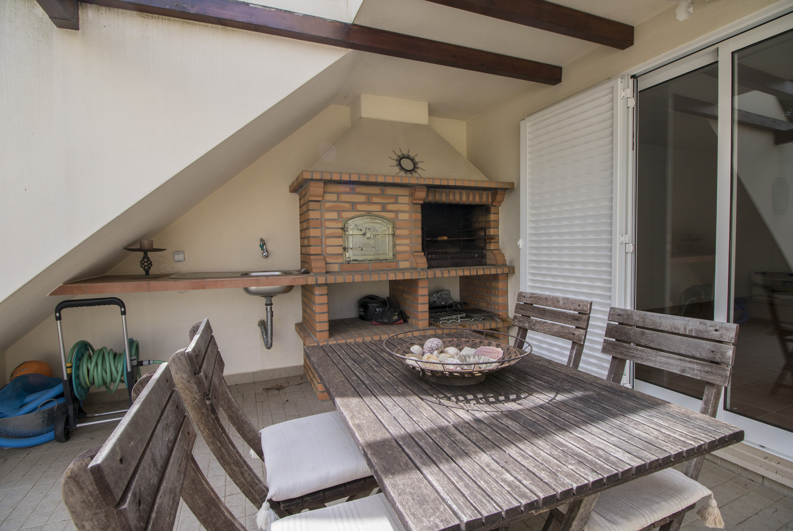 Outside, you’ll find a private pool of about 6 × 3 metres (1–1.8 m deep), with sun loungers and a rocking net where you can unwind and soak up the Algarve sun. A charcoal BBQ and outdoor dining set for six, tucked under a shaded area, create a cosy corner for relaxed al fresco meals. There are parking spots just outside the property for added convenience.