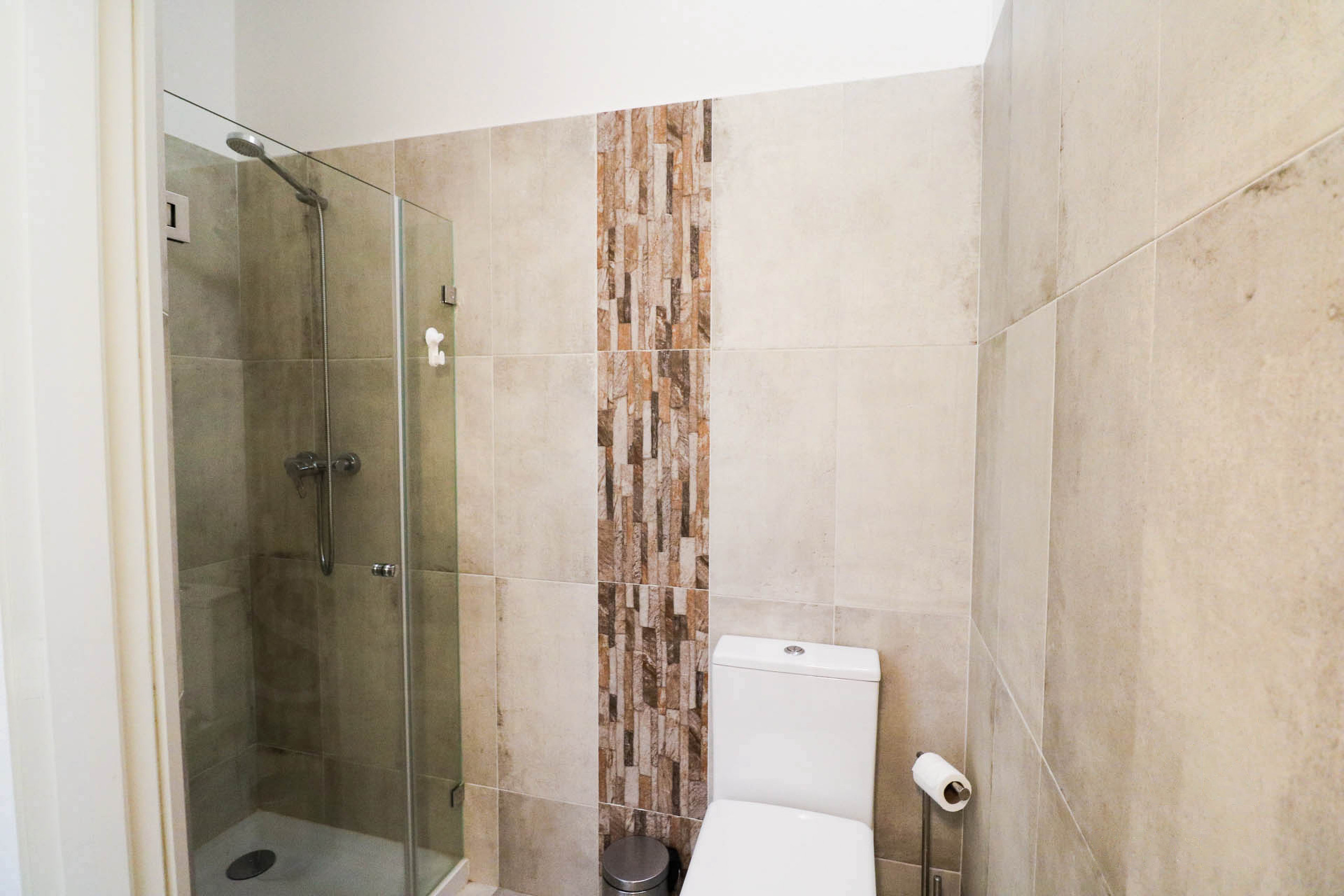 Step inside to three bedrooms on the first floor: one double with private bathroom and air conditioning, another double sharing a bathroom, and a smaller single bedroom also sharing that bathroom. On the ground floor there is a guest WC, and an extra single bed can always be set up in the living room, giving flexible sleeping options for families or friends.
