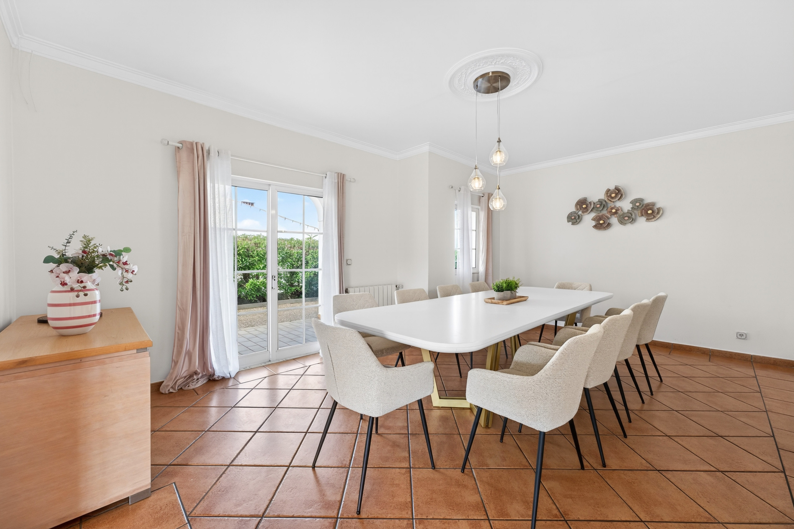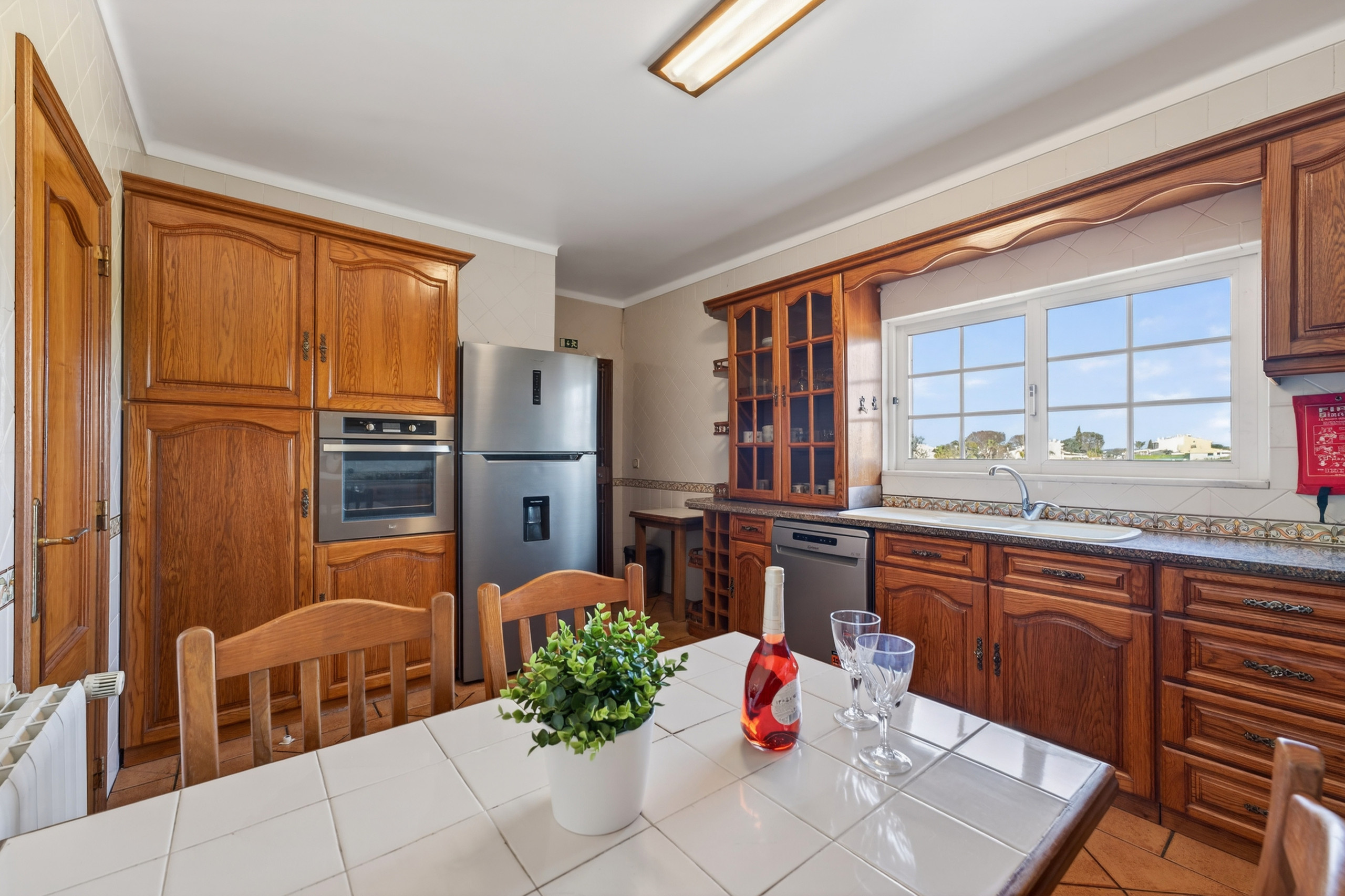 Step outside and you’ll find a private pool with around 10 sun loungers, inviting long, sunny days in the Algarve weather. A dining table sits just beside the barbecue, creating a practical and inviting corner for relaxed al fresco lunches and easy evening grills after a day out exploring.