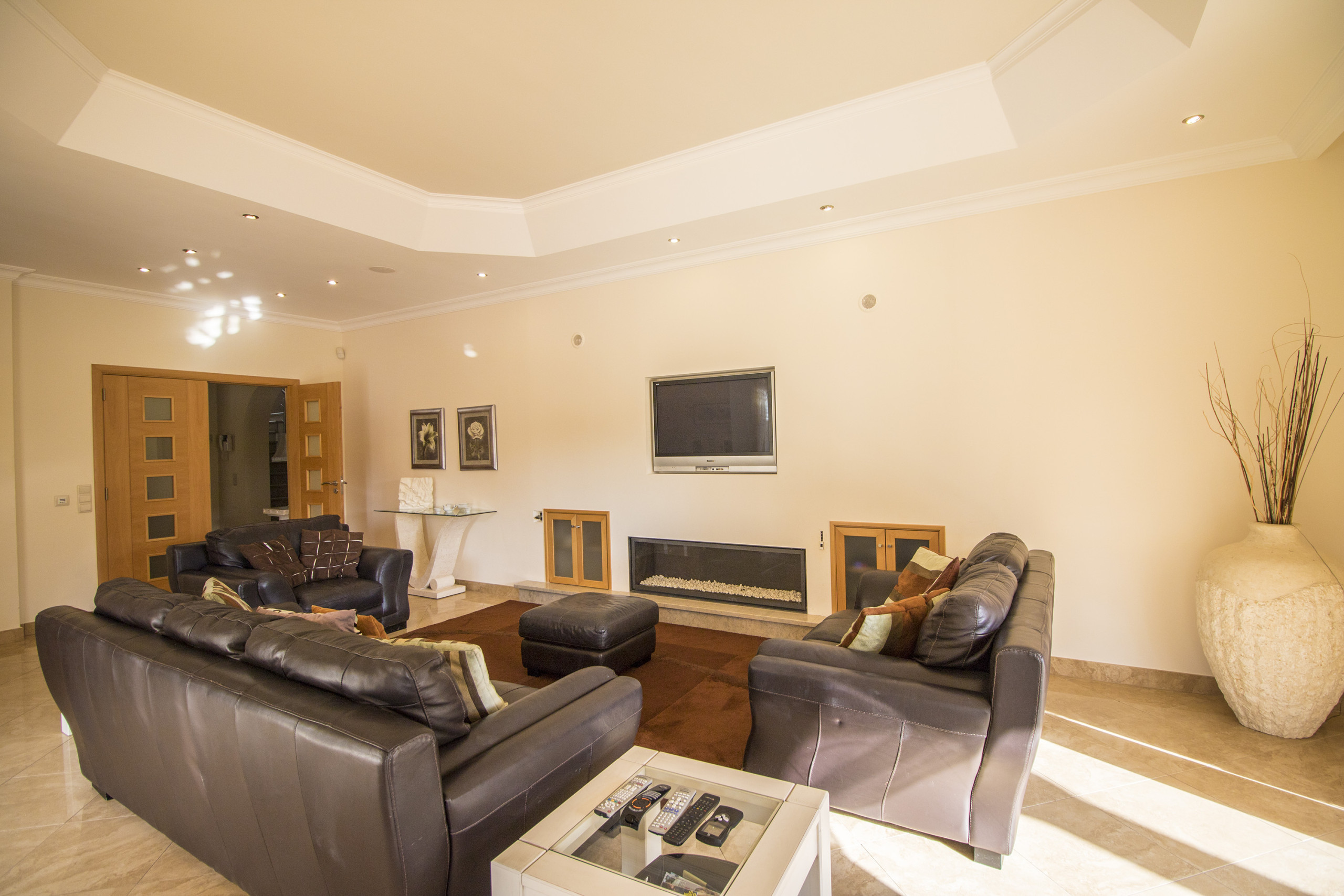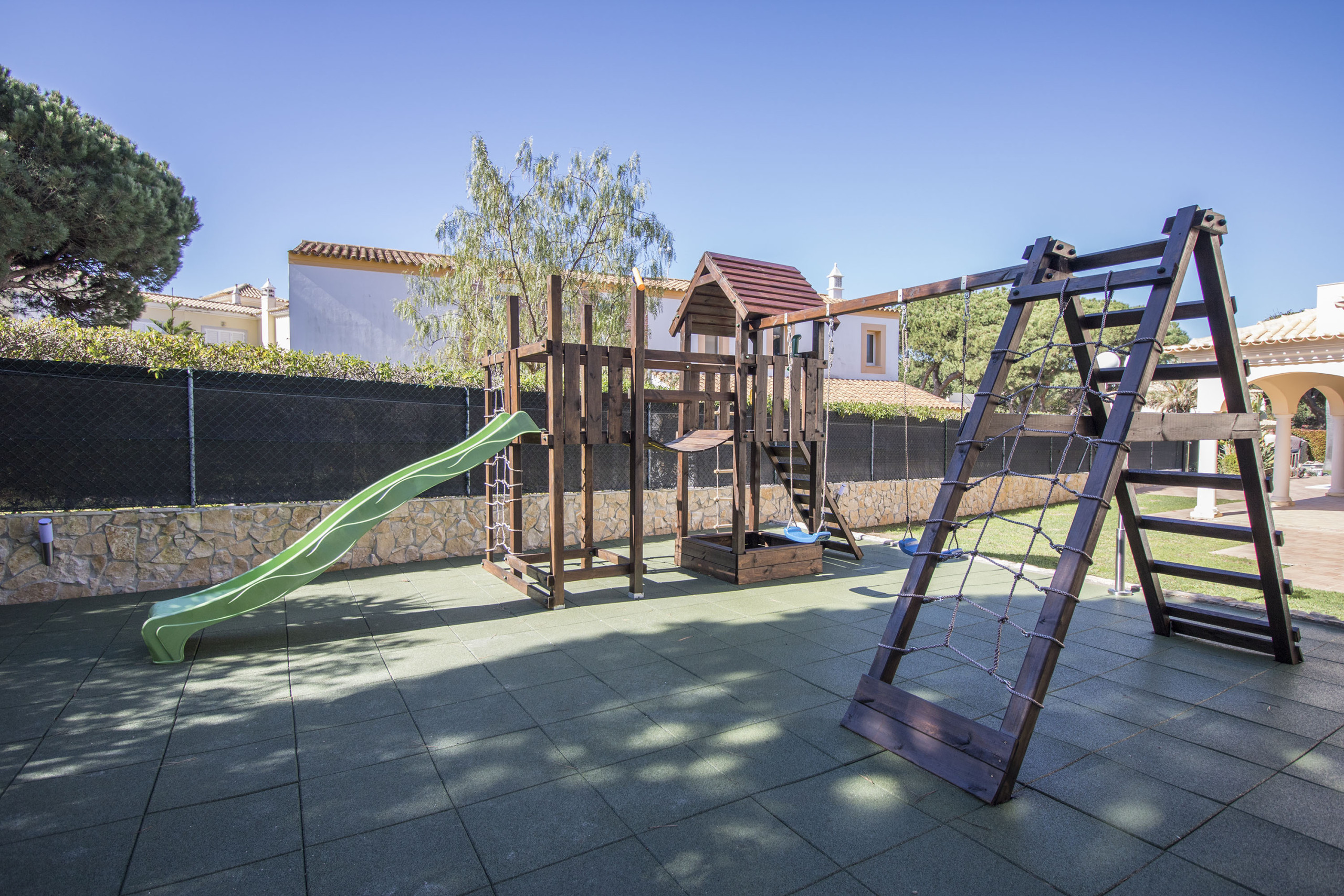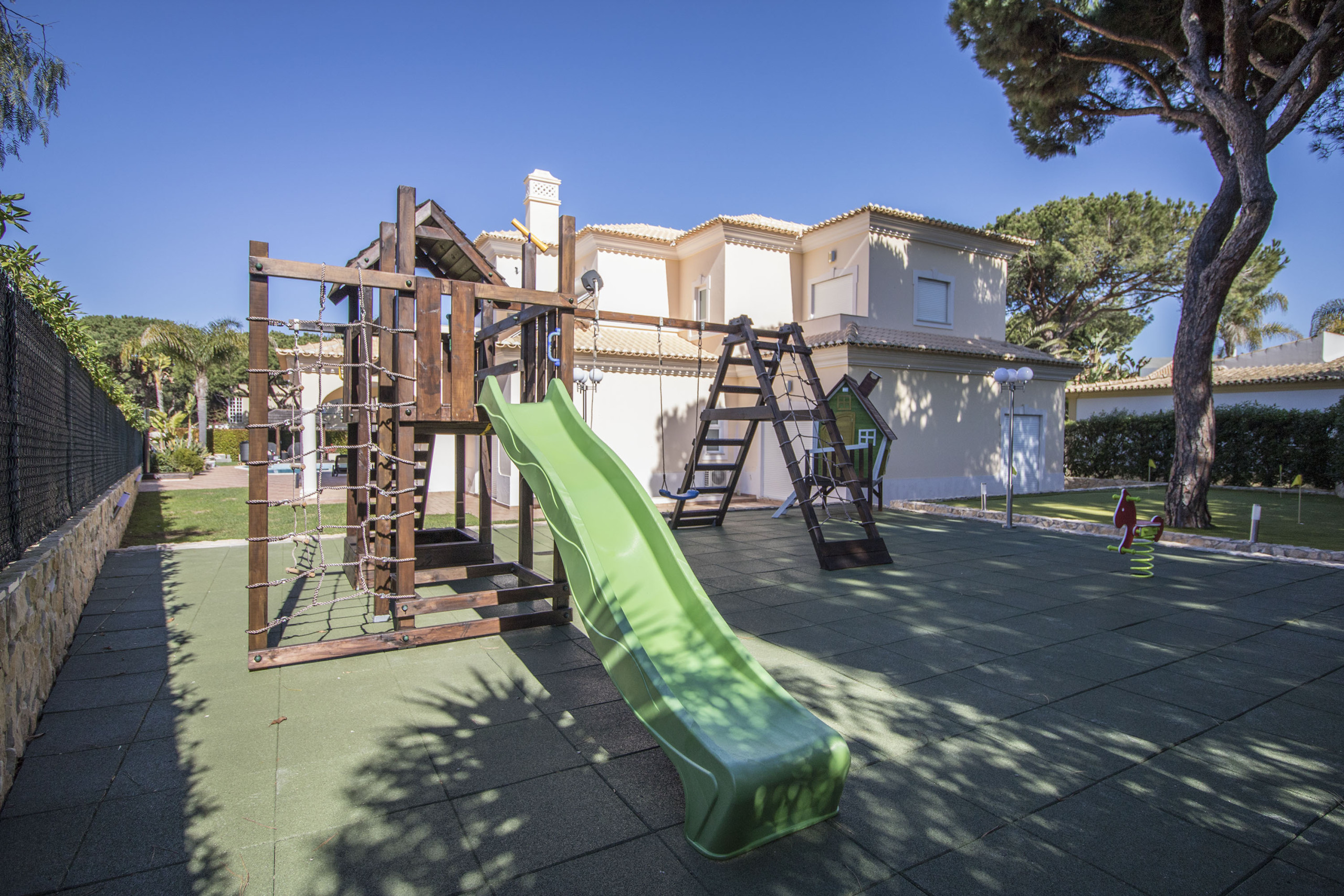 This exquisitely decorated 6-bedroom villa offers vast indoor and outdoor spaces amid palm and pine trees for ultimate peace. Picture yourself lounging by the 9×5m pool or bubbling jacuzzi after golf, serving sunset BBQs on the wooden deck, or letting kids play on the playground while you relax in the cinema room. Ideal for large families or groups craving privacy, entertainment and Algarve tranquillity.